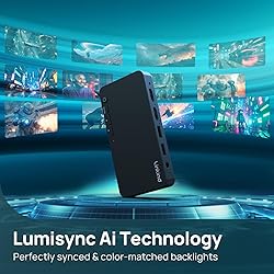 Please Note - You can only sync with HDMI devices, not with TV apps. This is because the sync box needs to read the video source via HDMI.(HDMI sync box doesn't support smart TV) Connect via HDMI, not only can you experience immersive cinema on your TV through the Sync Box, you can also experience the immersive feeling of computer games. Direct HDMI Source Synchronization - Zero interference, zero delays—lighting synced straight from the source. Unlike TV apps or camera-based systems, connects directly to HDMI devices (consoles, streaming boxes) for flawless, instant synchronization. By reading the video signal before it reaches the screen, it guarantees zero latency and true-to-source color accuracy, unaffected by ambient light or Wi-Fi delays. Powerful Compatibility - One strip of light to fit almost all screen sizes, support 27“-90” TV or computer display, flexible and cuttable, truly one strip for all sizes, easy to cover the home entertainment space. AI-Powered Precision for Every Frame - Lighting that thinks ahead, thanks to LumiSync AI. The built-in AI chip analyzes scenes in real time, adjusting brightness, color, and effects to match on-screen action—explosions flare instantly, moody scenes dim subtly. Perfect for gaming marathons or movie nights, with 16 million colors and 4 music sync modes to amplify immersion. Auto-Refill for Seamless Full-Screen Lighting - No black bars, no compromises—colors stay vibrant, even in letterbox mode. Automatically detects and ignores unused screen areas (like black bars in widescreen movies), focusing only on active content. Ensures accurate color matching and dynamic lighting for every scene, whether you’re gaming, streaming, or binge-watching. Plug-and-Play Setup, No Calibration Needed - Trim it, stick it, sync it—ready in minutes. No complex installation or color calibration. Works right out of the box. No hubs, no apps required—though the AiDot app unlocks deeper customization for enthusiasts. ImmerSpace - Unify your lights, voice commands, and entertainment. Seamlessly integrates with AiDot’s ecosystem (Neon Rope Lights, bulbs) and works with Alexa/Google Home for voice control. Create whole-room ambiance that syncs to movies, music, or gaming—all without extra hardware.