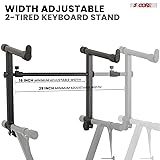 【2-Tier Keyboard Stand】Designed for dual keyboard setups, this double-tier stand allows musicians to stack and organize their instruments efficiently. Ideal for gigging artists, DJs, and producers who need a reliable stand for performances and studio work. 【Height Adjustable】This 2-tier keyboard stand features height adjustability up to 48 inches, with a second-tier width adjustable from 16 to 29 inches, making it ideal for digital pianos, synthesizers, and MIDI controllers. 【Heavy-Duty Build with High Weight Capacity】Made from iron, plastic, and rubber, this stand supports up to 165.5 lbs, ensuring rock-solid stability. Whether using a lightweight electric piano or a heavy workstation keyboard, this stand guarantees durability and safety. 【Anti-Slip Design】Keep your keyboard stable with anti-slip rubber grips that prevent movement during performances. The secure locking system ensures maximum safety, keeping your keyboard firmly in place while playing. 【Portable & Foldable】The lightweight yet sturdy frame allows for quick setup and easy folding, making it a portable solution for traveling musicians. Its compact design saves storage space in your home, studio, or gig setup.
