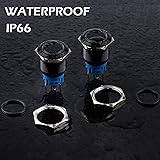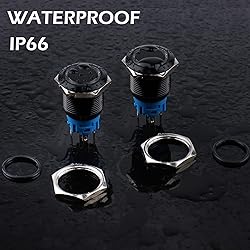 Latching: Press the button--ON, Press the button again--OFF; Electrical life: 100, 000 times, Mechanical life: 500,000 cycles Mounting Hole: 19mm(3/4"); Structure: 1NO 1NC; LED Light: 5A, 12-24V, Halo Ring White; LED life: 40,000 hours 4 wiring methods: Normal Open or Normal Closed; LED light can be always on, or illuminates when the device is working; 5 brass terminals are connected to the wire socket, No need to solder which makes your operation much easier Protection Degree: IP66 Waterproof and dustproof; IK09 Anti-vandal rate. It can be used in wet or dusty environment; But Don’t immerse the button switch in water Wide Applications: Suitable for car, computer, instrument and meter industry, door bell, home appliance etc.