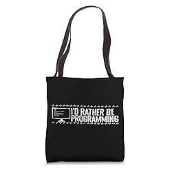 Beautiful image in the category programming. Important words are computer, coding and software. Nice grafic for Computer Fans and Internet Nerds with the title: I’d Rather Be Programming. The language of computers consists of 1 and 0, not everyone can tell the PC what to do. It is not easy to program the so called software, for that you have to be almost a nerd. Games or software have programmed databases. 16” x 16” bag with two 14” long and 1” wide black cotton webbing strap handles. Made of a lightweight, spun polyester canvas-like fabric. All seams and stress points are double-stitched for durability, and the reinforced bottom flattens to fit more items and hold larger objects. Spot clean/dry clean only.