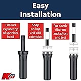 Effortless Setup: Quickly raise your sprinkler heads with the KAP-IT riser. Simply attach it to the top—no digging, tools, or underground fittings needed—saving time and eliminating the hassle of traditional adjustments. Maximize Water Coverage: Elevate your sprinkler heads to improve watering efficiency, reduce dry spots, and ensure uniform water distribution across your landscape for healthier, greener grass and plants. Fits Most Sprinkler Systems: Designed to seamlessly integrate with popular sprinkler brands, the KAP-IT riser fits without altering the original functionality of your irrigation system, maintaining its performance. Versatile Use: Ideal for both professionals and homeowners, the KAP-IT riser provides an easy, hassle-free solution for raising sprinkler heads, improving system performance, and maintaining your landscape. Mess-Free Adjustments: Say goodbye to digging and soil removal. The KAP-IT riser’s no-dig design simplifies sprinkler adjustments, reducing stress on underground fittings and leaving your yard clean and undisturbed.