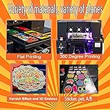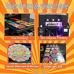 - Attention---Our installation instructions are in the usb, if you can not open, or can not install, do not hesitate to tell me, I will be ready to solve the problem for you Fast Speed and High Precision: The print resolution of the software can be set to 5760*1440dpi, 2880*1440dpi, or 1440* 1440dpi. Ultra-high precision and advanced print heads allow you to experience superior precision and amazing color accuracy, White Ink Mixing and Circulation System: This UV printer uses a white ink mixing system with an automatic cleaning function to prevent clogging and ensure that the ink is evenly distributed throughout the nozzle, which makes the printed pattern clearer and finer, and the color is more vivid, improving the print quality and stability, and helping to extend the life of the equipment. Vacuum Adsorption Platform: The A4 printer has a vacuum adsorption platform, which can tightly adsorb the print media to the platform, ensuring that the media surface is flat and wrinkle-free, improving the print quality and allowing you to get high-quality images. Wide Range of Application Scenarios: UV printing machines not only support ordinary flat printing, cylinder printing, but also print varnish effects, 3D embossing and UV DTF printing. 19.7x12.6 inches of large print area, suitable for a variety of surface printing, such as phone cases, bottles, acrylic, stone, wood, glass, leather, metal, PVC, etc. ❗❗ Please note: This UV printer cannot print PP and PE materials. Package Content: Includes a UV printer, 1x Bottle Holder, 1x Software, 1x USB User Manual, 1x Ink Damper, 1x Syringe, USB and Power Cable. 🌟PLEASE NOTE: Inks are not included. Equipped with advanced print software AcroRIP White ver10.3 for accurate printing and also has detailed operation video (in USB) for reference. Professional Support: We have a professional after-sales technical support team, if you encounter any problems in the process of use, we will provide you with help