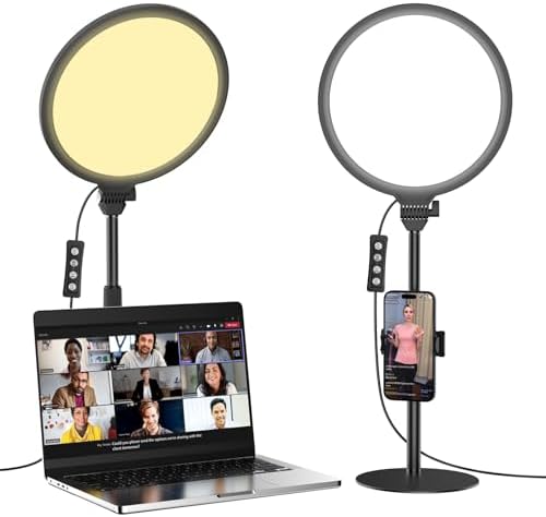 10.5in LED Desk Ring Light, Video Conference Lighting for Zoom Meeting/Video Calls, Live Stream, Home Office, Computer Lighting for Webcam, Online Classes, Professional Streaming