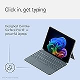 [Expand Your Possibilities] – Instantly turn Surface Pro[1] into a full laptop with the Surface Pro Keyboard, giving you more ways to work, create, and stay productive anywhere. [Comfortable, Precise Typing] – Designed for Surface Pro 12”, this premium keyboard offers a responsive, laptop-like typing experience so you can work comfortably on the go. [Flexible Hinge for Any Angle] – The new dynamic hinge flexes a full 360°, letting you type, draw, or stream from virtually any position. [Stable on Lap or Desk] – A web-style internal structure adds support and balance, keeping your keyboard steady whether you're at a desk or on your lap. [Premium Feel, Built-in Convenience] – Includes a backlit keyboard and large precision touchpad for effortless typing, navigation, and control — day or night. [One-Touch Shortcuts to Everyday Tasks] – Get quick access to helpful functions like the Copilot[2] key, mic mute, snipping tool, lock screen, and more. [Available in Bold, Modern Colors] – Choose from three stylish finishes: Violet, Ocean, and Slate[3] — designed to fit your personal style and elevate your setup.