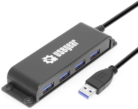 USBGear 4-Port USB 3.2 Hub, Ultra-Compact Data Transfer 10gbps USB-A Hub with 3.3 ft Integrated Extension Cable and Built-in Mounting [No Charging] for Mac, PC, Mobile HDD, Flash Drives