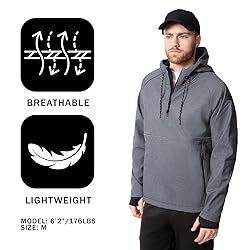 Adventure Awaits: Our tactical fleece is made from a premium spandex and polyester blend that gives the windbreaker jacket a gentle 4-way stretch while remaining tough and durable enough for work Weather Shield: Rain? No problem. Wind? No worries. Snow? Let's go. This waterproof hoodie has a 3-in-1 water-repellent, wind resistant outer shell designed to handle those wet, windy spring and fall days Classic Style, Modern Performance: Inspired by a snowboard jacket from the 90s the fleece lined hoodie has a retro look with a quarter-zip, large front zippered kangaroo pocket, and a drawstring adjustable hood Details Matter: The mens rain jacket has a hidden half length zip on the left side to make it easy to pull over your head. Soft, stretchy cuffs with thumbholes seal the wind out. A reflective strip on the back helps keeps you safe at night. Designed in Canada: Based in Montreal, we know a thing or two about winter. We design our pullover jackets and heavy hoodies for men to handle everything the four seasons throw at us. We wear the coats that we make.
