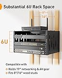 Strong & Stable Support: This 6U network rack is made of strong cold-rolled steel with a protective anti-rust coating and a durable powder coating finish. It has a top panel and bottom brace for enhanced rigidity and stability. The server computer rack supports up to 200 lbs (including 11 lbs on the top panel). Wide Compatibility and Space-Saving: The server rack measures 20.08″ in width, 11.31″ in height, and 13.86″ in depth. It’s a perfect fit for your 19″ networking, AV, and other rack-mounted equipment. It provides 6U of internal space, with a top panel for extra storage, optimizing device organization and space use. Heat Dissipation and Flexible Installation: With an open-frame design and slots in the side panels for airflow, this 6U wall mounted network rack helps keep your equipment cool. You can choose between wall-mounted or floor-standing installation to suit your needs. Grounding Wire and Cable Organization: The server rack is equipped with a grounding lug and grounding wire for added protection against electrical shorts and static discharges. It also has a semi-open top cover and rear cable routing access, making cable organization easier. Complete Package for Easy Installation: The package includes 1x 6U computer server rack, 38 x M6 bolts, 24 x M6 cage nuts, 4 x ST large screws and 4 x wall anchors. It can be installed on 8″ or 16″ wood studs (without anchors), as well as on concrete walls (with anchors). Do not mount it on drywall alone.