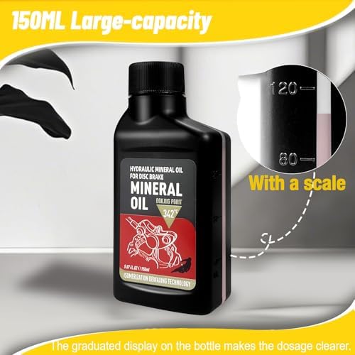 - 150ml Mineral Oil Brake Fluid: Equipped with 150ml high performance mineral oil brake fluid, ensures uniform and responsive braking force.150 ml large capacity and easy portability, perfect for multiple bike maintenance or quick refills on the go