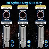 【10 Spline Only】:This ten spline lug nut socket is compatible with Bimecc 10-Spline lug nut and lug bolts.The spline socket set can only replacement for TA20-17/19. 【Professional Tool】Suitable for a wide range of vehicles with a 10 stare lug nut such as small car, SUV and truck, making this lug nut socket an ideal tool for mechanics and DIY enthusiasts. 【Efficient Removal】Dual drive Spline socket allows you to choose the most convenient and fastest tool for your specific situation. (hand wrenches are recommended when the nut is too tight to avoid cracking) 【Reliable Quality】Our lug nut key made of cold forged hardened CR-MO steel for extra strength and durability.To be your right hand when changing locking bolts, brake pads or remove a tyre. ⚠️【Please Note】Adaptable to 10 spline wheel lock key ONLY✅!Others such as long spiked wheel nuts NOT Compatible❌.Please check to get the correct splines and size before purchase!!