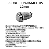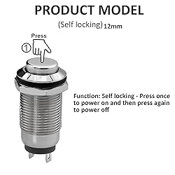 DIYhz Metal Waterproof Push Button Switch Self-Locking Lock Switch 12mm Small Power Button Switch Silver 2A/DC36V 2A/AC220V 3PCS