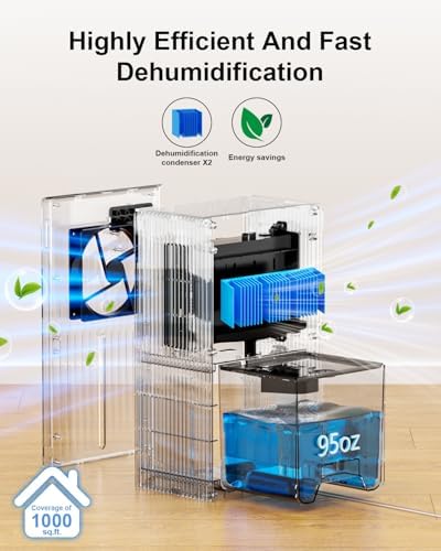 - High Efficiency Home Dehumidifier - POOYUPPC dehumidifiers(size:8.3in*5.7in*14.2in) use advanced condensing technology to remove up to 25oz of moisture per day. Covering up to 1,000 square feet, the dehumidifier dramatically reduces humidity within 24 hours, so you can say goodbye to humidity and enjoy a healthy, comfortable life