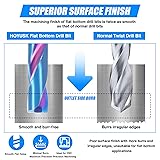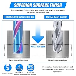 HOYUSK Drill Bit Set Size: 1/8" drill bit (0.125" Drill Diameter; 0.125"Shank Diameter; 0.98" Flute Length; 1.97" Overall Length) Precision Flat Bottom Design: These flat bottom drill bits are engineered for high-precision machining, delivering clean, flat-bottomed holes with smooth finishes. HOYUSK drill bits for hardened steel perfect for applications requiring exact depth control and minimal post-processing. Specialized in difficult drilling applications: hole enlargement, irregular/off-axis holes, angled drilling, and slope surface operations Blue Nano Coating & Tungsten Steel Material: Featuring a blue nano coating and crafted from ultra-fine 0.6um micro-grain tungsten steel, these small drill bits offer exceptional wear resistance, strength, and heat dissipation. Perfect for high-speed cutting and machining of hard materials up to 65 HRC, reducing tool changes and improving machine efficiency Sharp & Durable Cutting Edges: Fully ground cutting edges ensure sharp, precise drilling with no burrs. Our metal drill bits feature an advanced spiral flute design that ensures efficient chip removal, minimizes heat buildup, and extends the tool's lifespan Versatile Application: HOYUSK’s carbide drill bits suitable for drilling steel, stainless steel, aluminum, hardened materials, and more. Compatible with CNC machining centers, engraving machines, and other high-speed milling equipment. Not recommended for use with hand drills Secure & Stable Clamping: The straight shank design with a non-slip tail ensures a tight grip in the chuck, preventing slippage during operation. This design enhances stability and accuracy, making it ideal for high-speed machining tasks