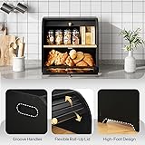 Natural Bamboo Material: This bread box is made of natural and renewable bamboo material with excellent stability and durability. Its smooth surface, natural texture and fresh color give this bread storage beauty that blend well with various home decor styles Long-Lasting Freshness: The high-footed bottom and back vents of the box enhance air circulation, and regulate moisture levels, ensuring that bread, fruits and vegetables stay fresh for longer. This bread box's excellent freshness retention makes it a kitchen essential Large Capacity, Flexible Storage: This double-layer bread box for kitchen countertop with 15.7"L x 9.8"W x 15.2"H, provides ample storage space for organizing and storing baked goods, such as bread, muffins, and rolls, as well as spice jars, fruits, vegetables, utensils and other items Roll-top design - Acrylic door: That can be easily opened and closed with a slight push or pull, and not take up any extra space . The acrylic door allows you to see the items stored inside without opening the door Hassle-Free Assembly: The package includes detailed instructions and all necessary tools for effortlessly assembly. You can instantly use this bread box to organize your bread, pastries, fruits, vegetables and snacks, creating a clean kitchen countertop