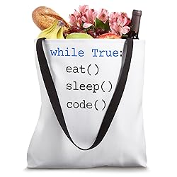 Embrace the eat sleep code repeat lifestyle with this funny coding design. Perfect for any programmer or developer, this idea showcases your passion for coding. Eat Sleep Code Repeat, highlighting the daily routine of every dedicated coder Celebrate your love for coding with this eat sleep code repeat design. A must-have for any programmer or developer, this funny idea captures the essence of the coder's life. Show off your dedication to coding with this Eat Sleep Code Repeat design 16” x 16” bag with two 14” long and 1” wide black cotton webbing strap handles. Made of a lightweight, spun polyester canvas-like fabric. All seams and stress points are double-stitched for durability, and the reinforced bottom flattens to fit more items and hold larger objects. Spot clean/dry clean only.