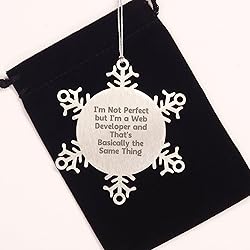 - Are you a Web Developer enthusiast or searching for a unique gift for the Web Developer in your life? Look no further! This delightful Snowflake Ornament features the hilarious quote 'I'm Not Perfect But I'm A Web Developer And That's Basically The Same Thing' that will surely bring a smile to any Web Developer's face. Crafted from premium stainless steel, this Snowflake Ornament is shatterproof, ensuring both durability and safety. It measures 3.14 inches in diameter. Each Snowflake Ornament is carefully crafted to make it a treasured keepsake. This thoughtful gift is perfect for Christmas, a birthday, or any special occasion where you want to show your love and appreciation for the Web Developer. Whether you're the sender or recipient, this Snowflake Ornament will undoubtedly become a treasured keepsake. Treat the special Web Developer in your life to a one-of-a-kind gift that will make their heart sing. Get your Snowflake Ornament today and make some unforgettable memories!