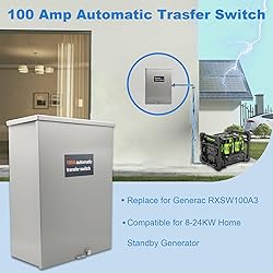 - Superior Quality: This 100 amp transfer switch is UL listed and its housing meets NEMA 3R standards, making it rust-proof, durable, and weatherproof. It can withstand harsh weather conditions and ensure uninterrupted functionality even in rain, hail, or high windsSeamless Power Transfer: Designed for single-phase generators, this 100A automatic transfer switch can be used to seamlessly switch from primary to backup power. Whether in industrial, commercial or residential environments, the ATS ensures power continuity and safety, avoiding service interruptions caused by power outagesWide Compatibility: This generator transfer switch 100 amp uses integrated load management technology to manage four separate HVAC loads with no additional accessories required. As a replacement for RXSW100A3 Automatic Smart Transfer Switch, for use with Evolution or Nexus generator controllers, 8-24 kW home standby generatorsSimple Operation & Maintenance: KUTTOLE 100A transfer switch has an aluminum partition inside to prevent excessive contact with internal components, ensuring absolute safety. This 100 amp switch transfer comes with a detailed installation manual. NOTE: If you are not familiar with installation and operation, we strongly recommend that you ask a professional electrician to install and operate it to achieve the ideal use effectDedicated Service: You will receive 1 x automatic transfer switch 100 amp perfect replacement for RXSW100A3, 1 x switch accessory, 1 x installation manual, and 1 year replacement period. From quality to service, KUTTOLE takes care of your needs throughout the process. Your satisfaction and happiness are our lifelong goals. If you have any questions or concerns, please feel free to contact us, we will provide you with satisfactory service within 24 hours