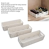 [WIDELY APPLICABLE]: Ideal storage solution for organizing kitchen supplies in any home space. [PREMIUM MATERIAL]: Constructed with sturdy plastic for durability and easy maintenance. Stackable design for saving space. [UNIQUE DESIGN]: Versatile organizer with expandable and stackable features for efficient storage in various rooms and locations. [EASY TO USE]: Convenient push and pull switch for easy access. Adjustable length for customized organization. [MULTI PURPOSE]: Ideal for kitchen groceries and other household items, optimizing space utilization.