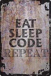 - Funny Novelty Large Metal Tin Sign Wall Art Tin Sign Eat Sleep Code Repeat Computer Nerd Beige Home Decor Funny Gift 12 x 8 InchPerfect Wall Decoration For a Desk, Bedroom, Man Cave, Bar or Garage Shop Home Office Work2 Holes For Easy Hanging Perfect Gift For Sarcastic Friend Co Worker For Him or Her Men or Women