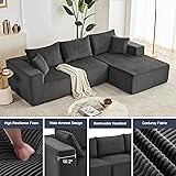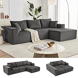 Multiple Package: Multiple packages may arrive separately. If you have any questions about your cloud couch sectional or need assistance, please reach out to us as soon as possible Modular Sectional Sofa: Discover the adaptability of our minimalist modular sofa, designed for flexible configurations to fit your lifestyle. This L-shaped sectional set is composed of three pieces, maximizing space efficiency when placed against a wall. Whether used as a sofa or sofa bed, it offers endless layout options to suit your comfort and style Comfortable Chaise Design: Experience exceptional comfort with our spacious sofa, featuring a 29.3" seat depth. The chaise lounge is perfect for relaxing, designed with high-resilience foam for superior support and long-lasting durability, ensuring a luxurious seating experience Soft Corduroy Fabric: Indulge in the softness of our upgraded, wrinkle-resistant corduroy fabric. The plush texture adds both warmth and sophistication to any room, while its durable, high-quality material ensures long-lasting comfort for any season No Installation Required: Boneless sofa say goodbye to assembly stress. Simply unpack, lightly pat the pieces, and allow the couch to regain its full shape within 72 hours. Enjoy a hassle-free setup and the immediate comfort of your new sofa Versatile and Compact: Perfect for any living space, apartment, or even kids' play areas, this modular sofa is designed for convenience. Its compact size allows easy navigation through narrow hallways and doorways, while offering practical and stylish seating for every room in your home