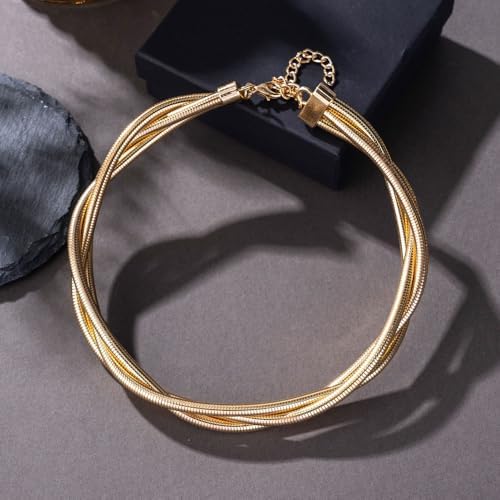 Chunky Gold Statement Choker Neckalce for Women Layered Snakebone Chain Collar Necklace Twist Wrap Stainless Steel Choker Punk Aesthetic Jewelry Gifts