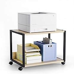 VINGLI 2 Tier Rolling Printer Stand with Storage, Desktop Printer Shelf for Home/Office Organizer, Heavy Duty Cart with Wheels Under Desk, Combinable Printer Table for Fax Machine Copier Scanner (Oak)
