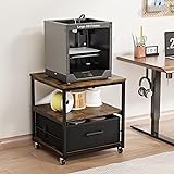 VINGLI 3 Tier Rolling Printer Stand with Storage, Mobile Printer Table with Adjustable Shelf, Heavy Duty 3D/Laser Printer Cart with Drawer for Fax Machine Copier Scanner (Rustic Brown)