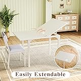 HUAHUU Dining Table Set for 4, Extendable Kitchen Table Cushion Chairs Set of 4, Rectangle Dining Table with Metal Frame & MDF Board, Folding for Small Apartment Saving Space, White