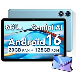 Advanced Android 16 Operating System Tablet With Protective Case + Ships With Premium Curated Gift Box For Kids Adults- Android tablet runs on android 16, providing a secure and personalized user environment,it offers enhanced customization, robust privacy protection, and user-friendly assistance features. includes a protective case with magnetic bracket, opening the cover automatically wakes the tablet, eliminating the need to press the power button 10 Inch Touchscreen HD IPS Display + 20GB Ram + 128GB Storage + 1TB Microsd Expandable(Sold Separately)- Ample storage and expandability with 20GB ram (4GB + 16GB) and 128GB internal storage, slot expandable up to 1TB via a microsd card, providing ample space for apps bundle, learning, work, reading. 10.1 inch IPS display features a 1280 x 800 high resolution screen 16:10 aspect ratio, offering a wide field of view vibrant color for comfortable viewing of videos, web browsing reading High-Performance Octa Core Processor + Dual-Band Wi-Fi Model + Bluetooth 5 + 6600mah High-Capacity Battery- Equipped with the unisoc T7250 octa core CPU, delivers smooth multitasking. wireless connectivity, supports 2.4/5 GHz wifi bands for stable connections; bluetooth 5.0 enables seamless pairing with external devices like speakers, headphones, and accessories. 6600mah battery ensures extended usage for entertainment work learning Widevine L1 HD Streaming Certified + 8MP Auto-Focus Camera + 2MP Selfie Camera + Widevine L1 for HD streaming on platforms. Built in GPS for travel & outdoor navigation ensures easy location tracking and directions, making it ideal for in car navigation. dual cameras: front facing 2 megapixel camera for clear video calls and conferencing; rear 8 megapixel camera with enhancements for high quality photos and videos USB-C Fast Charging Cable Charger Port + Built In GPS Navigation + GMS Google Certified + 3.5mm Audio Jack+ Quality Protection, New large big tablet bulk with fast USB C charging cable for durability ; includes a 3.5mm headphone jack for wired audio connections. Professional factory commitment Quality Protection Eye Protection Night Mode +Instant Face Unlock + Split-Screen Multitasking + Wireless Casting To Smart TVs + Parental Controls- Parental control for baby child kid toddler age 3 years + google play, facial recognition: includes parental controls settings to manage device usage and app access, ensuring a safe environment for children. facial recognition technology allows for quick and secure unlocking of the device.night mode ensures better reading experience