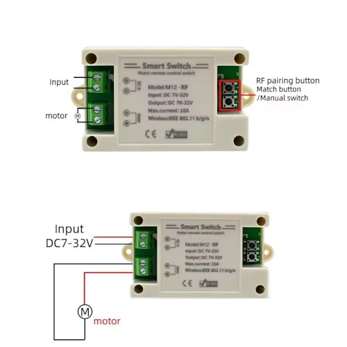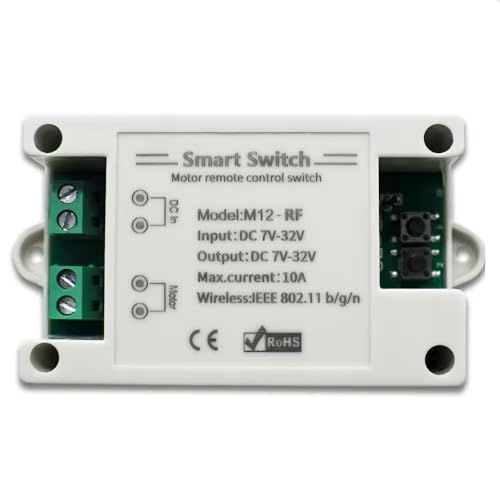 Spec: Input voltage:DC 7~32V Max.Current:10A Wi-Fi Standard:Wi-Fi 2.4ghz b/g/n Working temperature:-20℃~70℃ Working humidity:≤80% Material:ABS Size:3.23*1.97*1.26 inch (82*50*32mm) Transform your automation projects with this versatile WIFI wireless remote control switch. Operating on DC 7-32V with a maximum current of 10A, this smart switch is perfect for controlling linear actuators, motors. The M12-RF model features wireless IEEE 802.11 b/g/n connectivity and seamlessly integrates with the eWelink app for convenient remote operation. Compatible with Alexa for voice control capabilities, this switch enables forward and reverse control functionality - ideal for precise movement control in various applications,automate chicken coop,Electric Lifting Table etc,DIY your smart home,perfect for home automation . The compact, white housing includes clear terminal markings and mounting holes for easy installation. Whether you're building a smart home system or upgrading industrial equipment, this controller offers reliable performance and straightforward setup. The device supports remote operation through your smartphone, giving you control from anywhere with an internet connection.use your phone to open/close chicken coop door windows,phone app remote control electric life table,add wifi remote to your linear actuator project