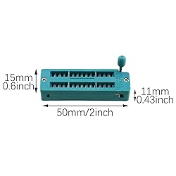 - Name: Universal ZIF IC test socket, chip test base. Material: A+ nylon, copper tinned. Color: blue. Specification: Size 50x15x14mm/2x0.6x0.55inch. Pitch parameter: 2.54mm (pin spacing)/15.24mm (line spacing). Applicable scenarios: IC programming, circuit board testing, soldering prototyping. Package content: contains 4pcs 28 pin universal ZIF sockets.