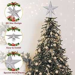 - Illuminate Your Holidays with Our Exquisite Silver Christmas Tree Star Topper!Why Choose Us?✔3D Design✔Sturdy Material✔Lightweight✔Glitter Coating✔Easy to Install✔High Quality Plastic MaterialSpecification:Quantity: 1 PCSSize: 6 InchMain Color: SilverMaterial: PlasticShape: PentagramTransform your Christmas tree into a celestial masterpiece with our stunning Christmas tree decor! Designed to capture the spirit of the Christmas season, this radiant star-shaped Christmas tree topper features a 3D look and a bright finish that shines in any light.