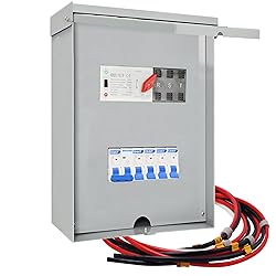 Automatic Transfer Switching System: The 50-amp generator transfer switch kit features intelligent control mode, ensuring effortless and worry-free power management. Should the mains supply fail, the 50-amp generator transfer switch will automatically switch to generator power. Once mains power is restored, the transfer switch seamlessly reverts to mains supply, safeguarding the continuous operation of critical equipment in your home or business Versatile Application: This smart transfer switch incorporates 6 adjustable circuit breakers: 1 double-pole 20-amp circuit breaker, 2 single-pole 15-amp circuit breakers, and 2 single-pole 10-amp circuit breakers. The unit automatically adjusts the 50-amp manual transfer switch according to actual usage, effectively preventing equipment overload and short-circuit damage Robust Construction: Crafted from high-strength galvanised steel with professional-grade premium coating, this 50-amp generator transfer switch kit is engineered for demanding environments. NEMA 3R/IP 55 waterproof rating ensures resilience against harsh weather conditions, delivering enduring durability and reliability Effortless Installation: Featuring a user-friendly design with pre-wired connections and clear circuit labelling, the 50-amp generator transfer switch includes external 2.95ft wiring for easy installation. Compatible with generators up to 12000W Safety Designs: Accessories include safety locks to prevent inadvertent operation. Pre-opened holes on the top and sides allow for easy installation in multiple scenarios. Waterproof plug on the bottom prevents rain/debris from entering