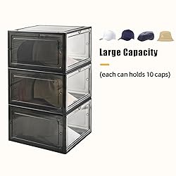 - Hat Organizer Box,Stackable Clear Baseball Caps Holder Box Containers with Magnetic Door for Hats Snapback Cap Storag,Clear Hat Storage with Magnetic Door, Holds 10 Hats Each,Clear
