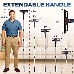 ✅ Versatile Window Washing Kit: This window squeegee for home has 2 different head options to deal with diverse cleaning needs including a 10" rubber scraper and three 10’’ microfiber clothes. Various combinations of the window washing kit with the adjustable attachment make cleaning easy and efficient. ✅ 2 Spray Triggers and Bottle: The window cleaning features two spray triggers for versatility: one on the handle for hard-to-reach places and a second near the head for low windows.The 50ml bottle with pre-filled cleaning solution inserts into the squeegee head for a seamless all-in-one cleaning system. ✅ Lightweight & Extensive Reach: Window cleaning squeegee kit with a 5-section aluminum detachable pole can help to reach the tops of windows without resorting to ladders or stepladders. Window squeegee for home is making the cleaning process much easier and safer. The maximum length of the durable pole is 76.7''. ✅ Streak-Free Results: A long handle window cleaner tool with extendable handle for tall windows ensures perfect cleanliness without streaks. Thanks to a high-quality head, you can quickly clean the surface from water and detergents from the surface of the glass, leaving it crystal clean. The squeegee for window cleaning is ideal for cleaning glass, windows, shower glass doors, solar panels, indoor and outdoor high windows, etc. ✅ Absorbent Pads & Machine Wash: The professional window washing kit includes three head cloths. Microfiber cloth is highly absorbent, effectively holding and transferring a generous amount of water and soap suds. Wash and dry the scrubber sleeves after each use. It is machine washable for your convenience. ✅ Customer Service: At DSV Standard, we offer a full 18-month against defects in design, materials, and workmanship so you can buy your reliable window cleaning squeegee kit with confidence. Plus 30 Days 100% Money-Back Along With 24/7 customer service. Remember – a high-qualified window cleaning kit makes the difference.