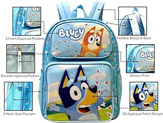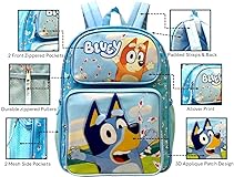 Fast Forward Kid’s Licensed 16” Large School Backpacks with Multiple Pockets (Bluey-Boy)