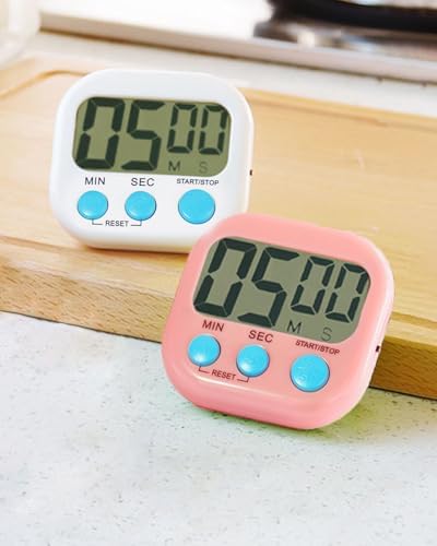 2PC Classroom Timer & Digital Home Timer, Large Screen Countdown Stopwatch with Magnetic Back, Loud Alarm for Cooking, Kitchen, Office, Colleg (White, Pink)