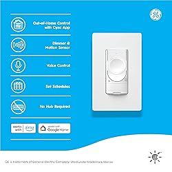 Upgrade to Smart Lighting: Transform traditional bulbs into smart lights with the Cync motion sensor light switch and smart dimmer, control lights effortlessly via the switch or Cync App, offering scheduling and scene customization Convenient Control Anytime, Anywhere: Experience ultimate convenience with a WiFi light switch that offers remote control dimming and scheduling via the Cync App powered by Savant, for a well-lit home, even when you are away Voice Control: Hands-free control with home automation by connecting the Cync smart switch to Amazon Alexa or Google Home (devices sold separately) providing a seamless integration into your smart home ecosystem - no standalone bridge or hub required Energy-Saving Features: Save energy and money with motion and ambient light detection; the smart switch intelligently adjusts light based on natural light and motion, ensuring efficient usage Easy Installation: This smart light switch requires 2.4 GHz WiFi to enable smart control, neutral wire required; suitable for homes built post-1980s, check bulb compatibility before purchasing