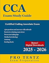 - CCA Exam Study Guide 2025-2026 – Your All-in-One Path to Certification Success Unlock your potential and ace the Certified Coding Associate (CCA) exam from AHIMA with this comprehensive study guide packed with real-world practice, up-to-date 2025 codes, and expert guidance. Stop struggling with outdated materials and start mastering medical coding with confidence!What’s Inside the CCA Exam Study Guide Book:2 Full-Length Practice Exams (230 questions total) with detailed answers and rationaleCore Essentials: Common Anatomy, Medical Terminology, and Stress-Busting Exam SecretsScoring Sheets to track your progress Plus, Bonus eBooks (Over $200 Value!):Medical Coding Prep Course eBook ($97 Value)400+ pages of expert instruction700 mock exam questions with answers1,200 defined medical terms + clinical explanationsCovers Coding Concepts to Surgical Op ReportsMastering ICD-10-CM eBookIntro to ICD-10-CM, coding guidelines, chapter-specific tips, case studies, and future trendsMastering CPT Coding eBookCPT essentials, E/M services, surgical coding, radiology, pathology, and exam prep strategiesMastering HCPCS Level II eBookDurable equipment, telehealth, modifiers, billing strategies, and practical case studiesMastering Modifiers eBookModifier basics, advanced concepts, common scenarios, and practice assessments Why Choose This Guide?Realistic practice questions mirror the 2025 AHIMA CCA examCurrent 2025 codes—no outdated info wasting your timeDesigned for students testing after January 1, 2025Everything you need to pass, from foundational knowledge to advanced skills Take control of your study time and step into your medical coding career with the ultimate prep toolkit. Get started today!