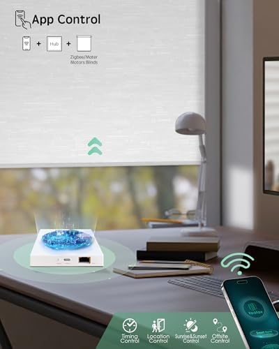 - 【Flexible Coverage Range】 Signal covers 590", suitable for home or small office scenarios, allowing devices to be freely placed without restrictions. We advise installing one hub on each floor when placing blinds across multiple levels to ensure optimal performance and connectivity