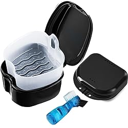 1 Pack denture soaking container with strainer 1 pack retainer case 1 pack clean brush