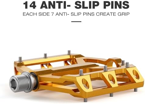 • 【GREAT GRIPS】: There are 14 replaceable pins per pedal (7 per side) that provide solid grip with good foot placement. Whether you're grinding up an ultra-technical climb or bombing down the gnar, your feet stay in position, and these platform pedals are confidence-inspiring.