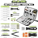3D Printer Tools Kit, 34pcs 3D Printer Accessories for All FDM/SLA Printers Includes Nozzle Cleaning Tools, Removal Scrapers, Finishing Tools, 5 Types of Files,Brushes, Wire Cutter, Engraving Knife