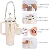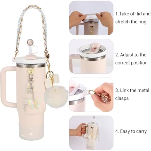 - 【9-PIECE KIT】Transform Your Stanley Cup – Includes everything you need to bling your 30oz/40oz tumbler: 1pcs water bottle handle strap,1pcs water bottle boot, 2 pcs silicone straw cover, 1pcs bow-tied plush ball, 1pcs flower key-chain, 2pcs heart hook. No need to buy separately!