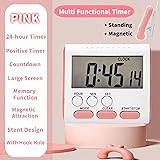 24 Hour Digital Timer Magnetic Kitchen Timer with Clip Large Screen Alarm Clock Refrigerator Magnet for Small Cooking Hour Timers and Home Use Perfect for Fridge and Stove (Pink)