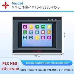 - YKHMI PLC HMI Integrated Programmable Logic Controller MM-17MR-4MTS-FE380-FX-B Description: Please download the User manual / HMI Software / USB Driver / Tutorial / Diagram : https:// drive.google.com/drive/folders/1N4nXlDS_wumzx0K0zZJURaIR--garByl?usp=sharing MM-17MR-4MTS-FE380-FX-B With built-in analog input 0-10V and 2 analog output 0-10V single, also have 2 Temperature which range from -50 to 150°, the temparature probe use NTC10K, B3435 (B value is 3435) Attention: 1. pls disconnect the download USB cable when read the value of AD, DA and temparature NTC10K probe value 2. temparature NTC10K probe range is -50 -150 °, B3435 model. 3. HMI Choose FE serials, 380, choose FXCUP in PlC type Product Description: 1. PLC Type: Fully compatible with FX1S, 10 Input 7 Relay Output. Have additional 4 Transistor Output: 2 for high speed pulse 100KHz (5V pulse single) & 2 for direction, can drive 2 servos or 2 steppers with pulse, have 2 high speed input 100KHz X0 X1 to control encoder also 2. PLC software: Use GX Workers 2 or Developer (pls download from GX Workers 2 website, we only have Chinese version), support Command + T Ladder Diagram + SFC for programming 3. HMI Software: YKBuilder V5.3/7.0 (Pls contact us, we will share it and the video instruction and guidelines), HMI Choose FE serials, 380 4. Cable for download program from PC to PLC/HMI: Use the: mini port – USB cable, pls install HMI & PLC’s USB driver first, which we will share. 5. High Speed: 2 high speed counting, 2 high speed output pulse (100KHz) with 5v signal 6. MM-17MR-4MTS-F350-FX-B With 2AD and DA 0-10V single, 2 Temperature NTC10K -50-150, B3435 -- Remark: Pls disconnect the download cable when read the AD DA value Packing List: 1 X HMI PLC All In One 1 X Cable for PLC and HMI program download 2 X Pulse cable to connect for PLC and Servo or Stepper 4 X Buckles Pls contact us for HMI sofeware, USB driver, User mannual and instructions, we have whole vidie guidance, thank you!