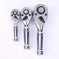 Compact Sizes for Versatile Use: stubby set boasts 1/4", 3/8", and 3/8" drive mini ratchets, with lengths of 3.6", 4.5", and 5.25" respectively. Their compact design saves space and enhances ease of operation, catering to your daily work needs with convenience. Premium Quality for Longevity: Crafted from high-quality alloy steel with a head, stubby ratchet set ensures durability. Its fully polished chrome finish resists corrosion, facilitates easy maintenance, and guarantees long-term use without deformation. Professional Design for Efficiency: The reversible 72-tooth ratchet head requires only a five-degree swing arc for operation. The quick-release head securely locks the socket in place, preventing accidental drops and enhancing safety. Reversible Mechanism for Smooth Operations: Featuring a biased drive switch, this 72-tooth ratchet set allows for quick direction changes, ensuring seamless gear engagement and preventing slippage. The quick-release button enables one-handed socket changes, making it ideal for confined spaces. Versatile Applications for Comprehensive Use: This three-piece ratchet set, with its varying wrench lengths, is perfect for household maintenance, motorcycles, electric vehicles, and automobile repairs.