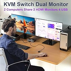 【HDMI KVM Switch 2 Monitors 2 Computers】 KCEVE KVM Switch Dual Monitor HDMI allows you to control 2 computers using only one set of mouse, keyboard, printer, scanner and monitor, and supports webcam. You can press “Windows+P” to select Mirror Mode or Extended Screen Mode to switch between the 2 monitors freely. Each computer requires 2 HDMI cables + 1 USB cable to be plugged into the KVM switch HDMI 【KVM Switch 2 Monitors with 4 USB Ports】 Dual monitor KVM switch is suitable for 2 computers to share 2 monitors and 4 USB devices without unplugging the power, and securely recognizes keyboards, mice, printers, scanners and other USB devices 【KVM Switch 2 PC 2 Monitors Support Ultra HD 4K@30Hz】2 PC 2 Monitor Switch supports 4K@30Hz, 1920x1080@120hz, YUV 4:4:4, backward compatible. Dual monitor switch for 2 computers support input terminal to connect 2 computers with different resolutions. Please note: Flickering and black screen problems can be effectively solved by using 8K cables. The shorter cable makes the signal transmission more stable and clearer 【USB KVM Switch with 2 Switching Methods】Plug and play, No additional driver software is required, making your work and life easier and more convenient. You can freely switch between two computers by push button switch or 1.5 meter wired remote control (included).LED indicator light shows which computer is currently connected. If you are using high power devices, please connect 5V power supply by yourself 【Great Compatibility and Wide Application】KCEVE 2 monitors 2 computers HDMI support a wide range of HDMI input devices or sources, such as computers, laptops, TV boxes, Apple TV, PS3, PS4, PS5, projectors. This KVM switch supports Windows 7/8/10/11/XP/Vista, Mac OS, Linux and Chrome. Dual monitor dual computer KVM HDMI is widely used in office, business seminar, multimedia teaching, home theater, game room, scientific research and testing, etc 【After-sales Support】KCEVE USB KVM Switch HDMI Built-in high performance chip, metal case. Package includes dual monitor KVM switch HDMI, 2 USB cables, 1 wired remote control, 1 user manual. We provide lifetime technical support for all KVM switches. If you have any questions, please feel free to contact our professional support team, We will answer your questions within 24 hours!