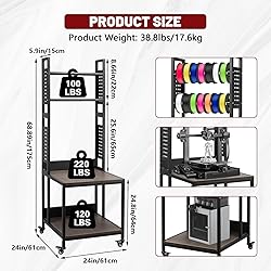 - Maximize your 3D printing workspace with this heavy-duty printer stand! Features a sturdy steel frame (440lb capacity), 3-tier filament storage for 12+ spools (PLA/ABS/PETG), and smooth-rolling lockable wheels. Perfect vibration-free base for many printers. Great for home offices, workshops or garages.