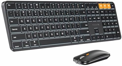 - Rechargeable and Power Saving: The keyboard and mouse for mac feature built-in rechargeable batteries, 1200mAh for keyboard, 300mAh for mouse. Additionally, if the keyboard is not used for 60min, it will enter sleep mode and can be awakened by pressing any key. Backlighting needs to be turned on again