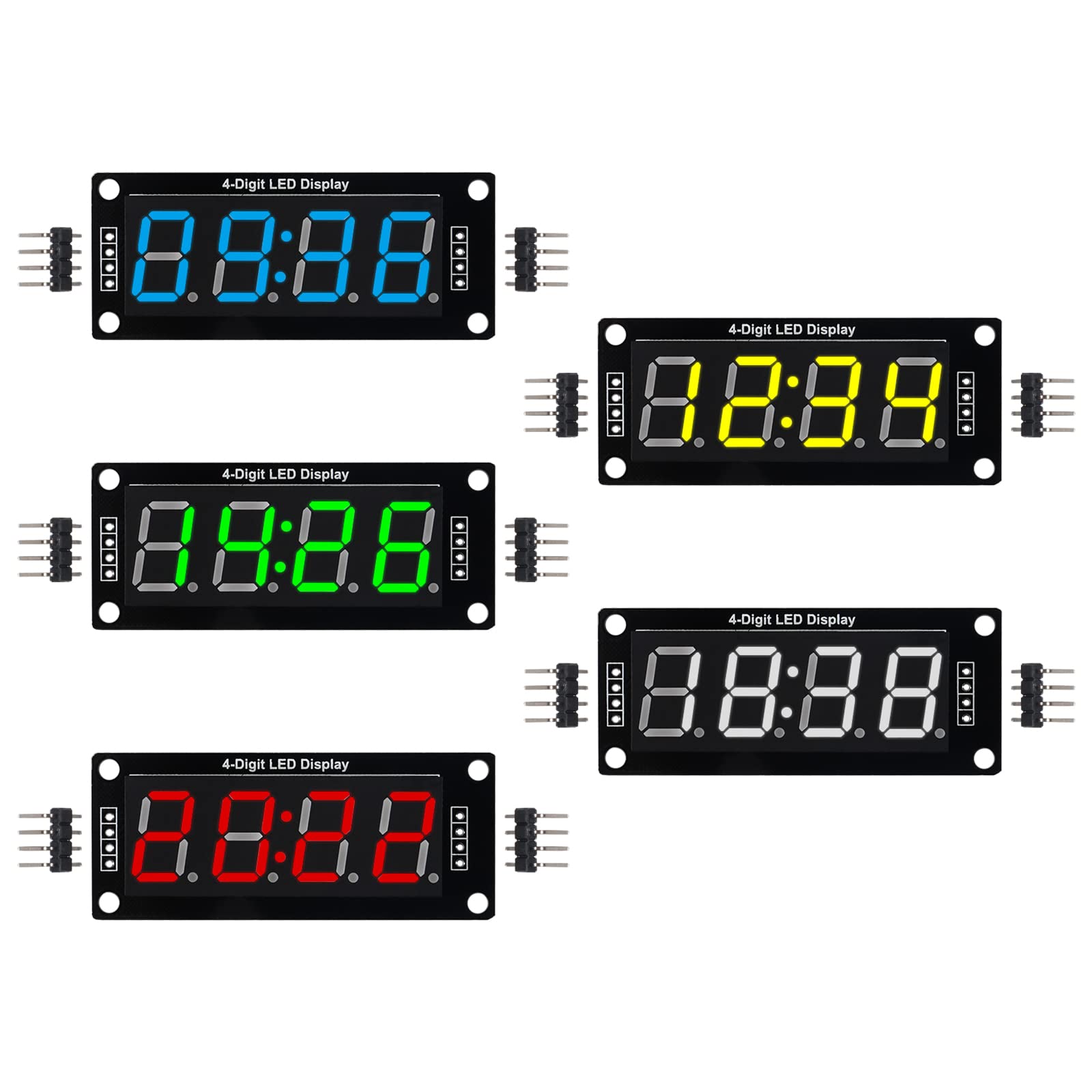 4-Digit 7-Segment LED Display TM1637 Module for Arduino ESP32, ESP8266, Raspberry Pi - Clock and Counter Display, 5 Pieces, Tutorials Provided